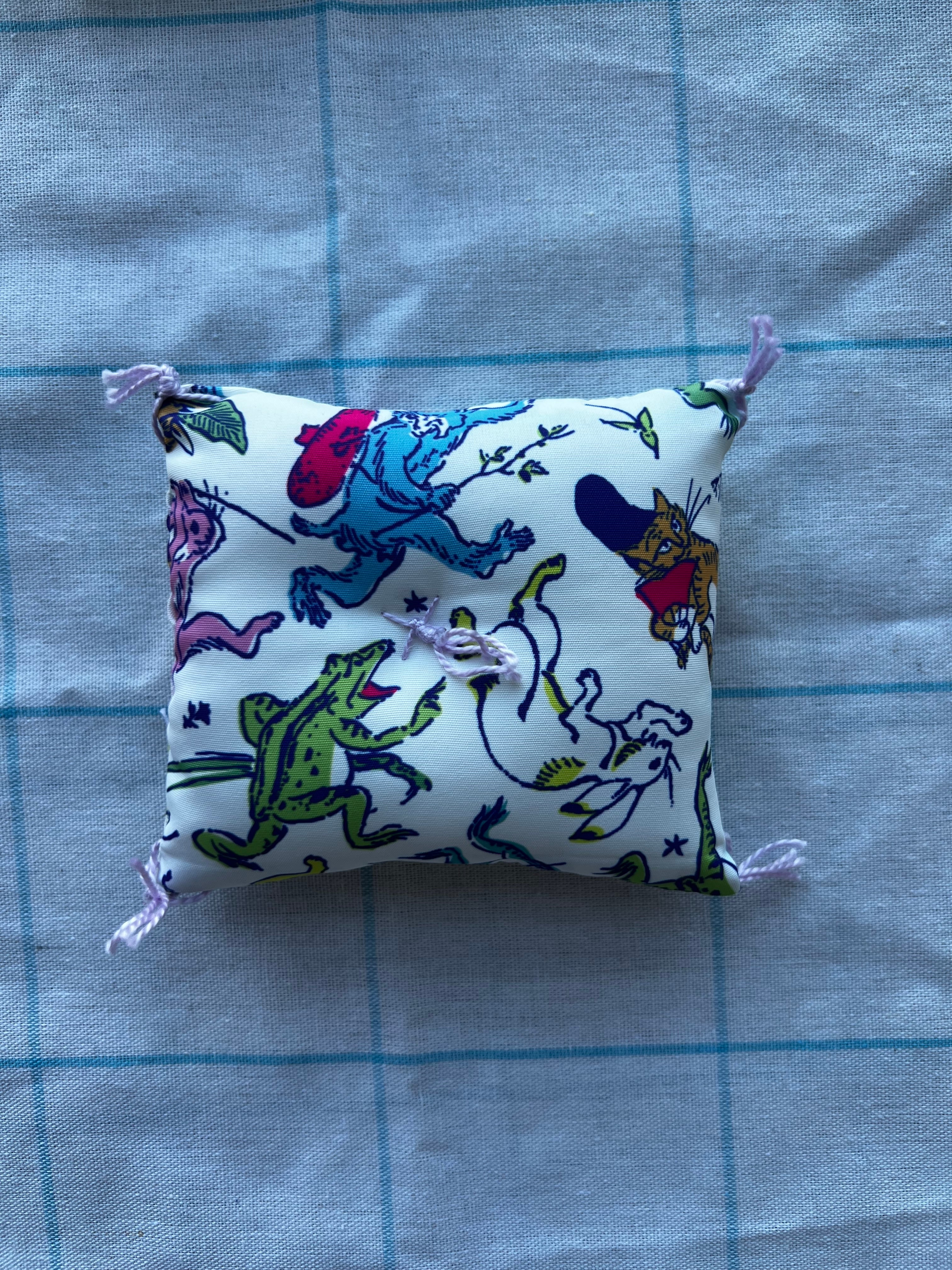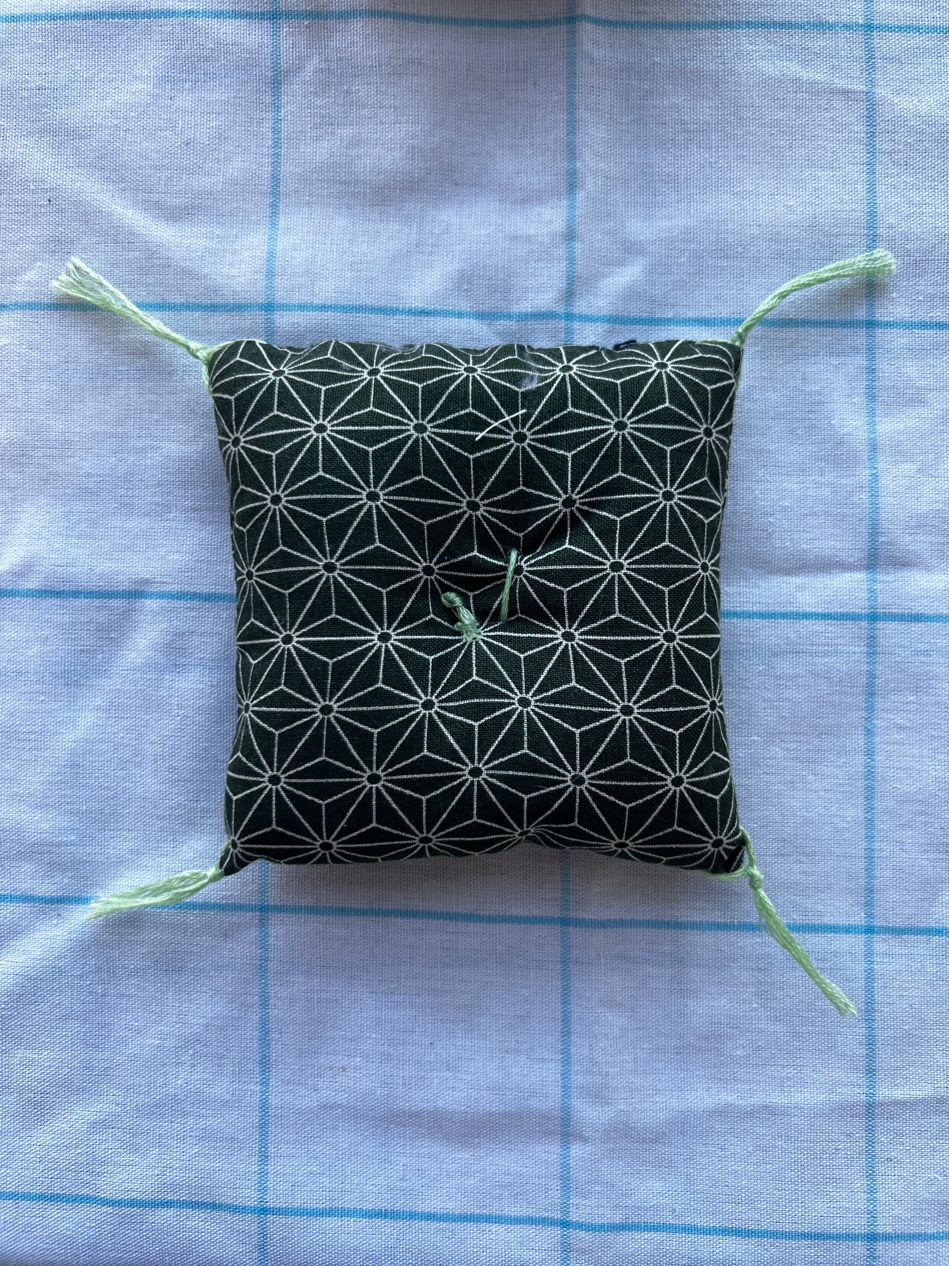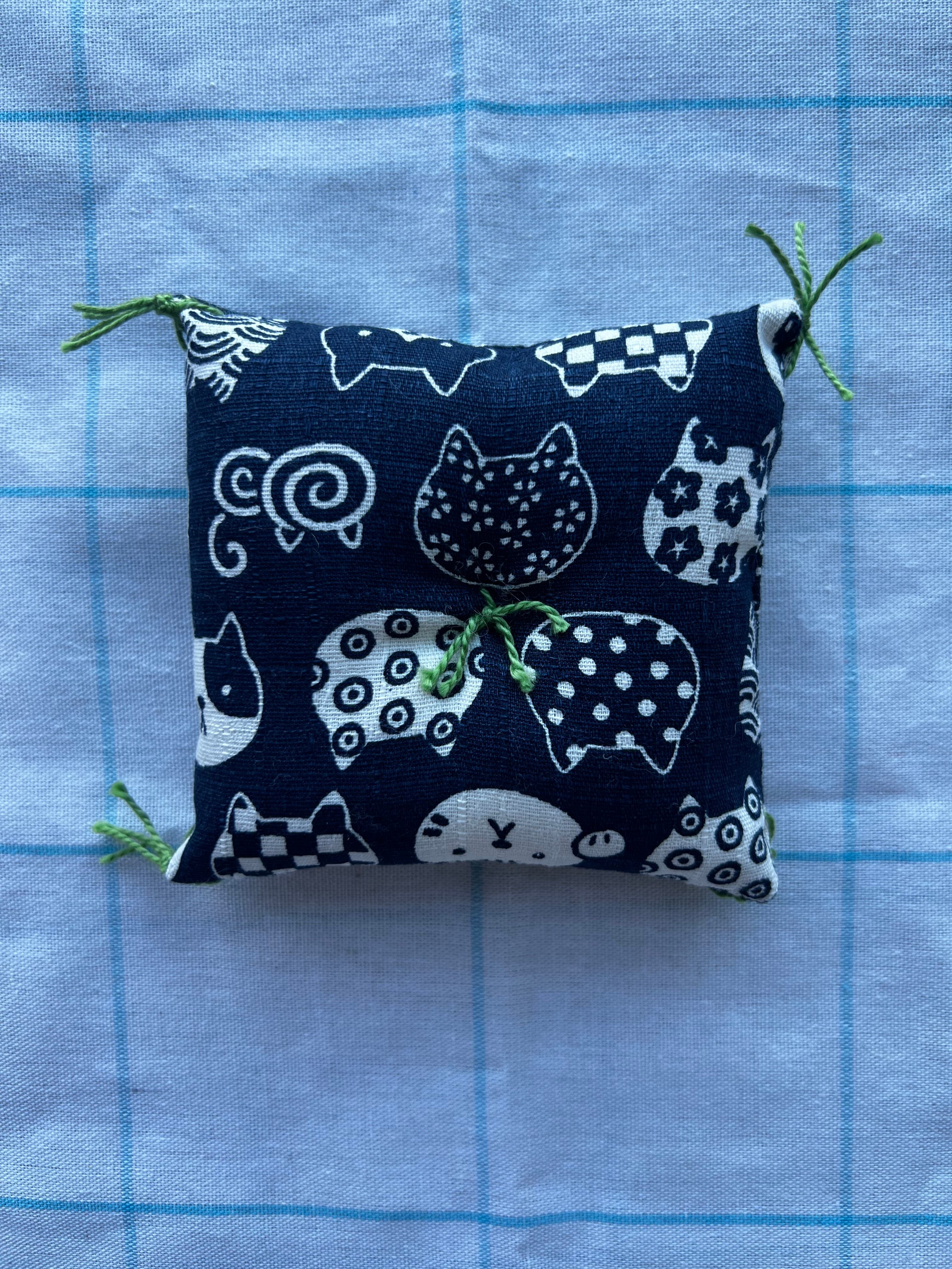 泥団子をやさしく飾るために作製した、小さな座布団です。